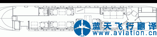To view this page ensure that Adobe Flash Player version 9.0.124 or greater is installed. Floor Plans The 3-zone cabin of the Global 8000 business jet (龐巴迪環(huán)球8000公務(wù)機(jī)) offers leaders more space, comfort and luxury than any aircraft in its class, combined with configurable flexibility for unmatched productivity. Designed to match the customer's lifestyle, and for optimal performance with 8 passengers, the Global 8000 aircraft will more than comfortably accommodate up to 19 passengers*. 客艙長度 Cabin length - 50.60 ft (15.42 m) 客艙寬度 Cabin width - 8.17 ft (2.49 m) 客艙寬度 Cabin width - 6.92 ft (2.11 m) 客艙最大高度 Cabin maximum height - 6.25 ft (1.91 m) * This number may vary with interior configuration selected. Baseline floor plan