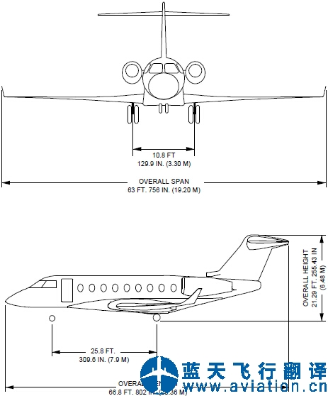 灣流G280公務(wù)機(jī)總體尺寸 Gulfstream G280 Business Jet Overall Dimensions