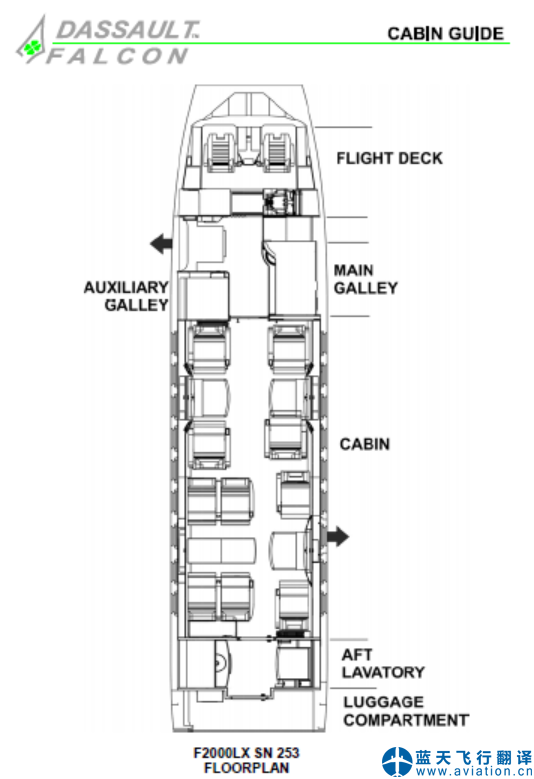 北京藍(lán)天飛行翻譯公司完成公務(wù)機(jī)公司達(dá)索獵鷹2000公務(wù)機(jī)客艙指南手冊翻譯任務(wù) Falcon 2000LX CABIN GUIDE Translation ![]() 達(dá)索F2000LX平面圖 達(dá)索獵鷹2000公務(wù)機(jī)客艙指南手冊的主要內(nèi)容包含有: INTRODUCTION EMERGENCY EMERGENCY EQUIPMENT EMERGENCY LIGHT SYSTEM OXYGEN GALLEY ENTERTAINMENT SYSTEMS TELECOMMUNICATIONS FURNISHINGS ADJUSTMENT CABIN SEAT ADJUSTMENTS CABIN SEAT SHOULDER HARNESS BACK-CYCLER LUMBAR FUNCTIONS CABIN SEAT BERTHING DINING TABLE ADJUSTMENTS CONSOLE TABLE OUTLETS/MISCELLANEOUS ELECTRICAL OUTLETS |