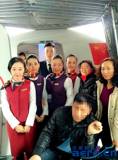 劉曼乘務(wù)組和滿先生合影 旅客航班中突發(fā)癲癇,乘務(wù)組及時施救旅客轉(zhuǎn)危為安 1月30日,CA1841北京至揚州航班,早上7:45分從北京起飛。剛剛起飛后五分鐘左右,飛機還處于爬升階段,客艙里傳來頻繁的呼喚鈴聲。按照正常服務(wù)程序,乘務(wù)員是可以等到飛機平飛之后再出去服務(wù)的,但是春運期間,旅客較多,各種突發(fā)情況也經(jīng)常發(fā)生。乘務(wù)長劉嫚判斷客艙里應(yīng)該是發(fā)生了比較嚴(yán)重的事情,立即安排頭等艙乘務(wù)員袁冰走出去查看,當(dāng)袁冰走過去時,發(fā)現(xiàn)一名中年男士旅客全身抽搐、口吐白沫,已經(jīng)沒有了意識。 乘務(wù)長劉嫚立即開始了機上突發(fā)事件的處置預(yù)案,首先通知機長航班中的緊急情況,然后立即廣播尋找救助醫(yī)生,再次立即將乘務(wù)組員進(jìn)行分工,讓客艙保持有序。非常幸運的是,當(dāng)天航班中有一位護(hù)士,她聽到廣播后立即來到發(fā)病旅客身旁,和乘務(wù)組員徐青(徐青雖然是新乘務(wù)員,但學(xué)過護(hù)士專業(yè))一同救治發(fā)病旅客。她們讓旅客半臥位平躺、吸氧、物理降溫、掐人中,他們在忙碌救治病人的時候,劉嫚讓駕駛艙調(diào)低了客艙溫度、打開了通風(fēng)口。這樣的環(huán)境安排有利于讓發(fā)病旅客的救助。讓人意外的是,前來主動幫忙人中的還有一名外國旅客,他建議發(fā)病旅客周圍的旅客都把遮光板拉下來,營造一個相對安靜、舒適的環(huán)境,這對乘務(wù)組救助旅客也起到了很好的幫助作用。 經(jīng)過大約二十分鐘的急救,患者終于轉(zhuǎn)危為安,病情穩(wěn)定。在乘務(wù)組忙著救治的同時,機組也幾次主動和乘務(wù)組電話溝通,看旅客的發(fā)病情況是否需要航班備降,并且已經(jīng)預(yù)備好了備降的機場,整個救助旅客期間,乘務(wù)組與機長聯(lián)系達(dá)五次以上。當(dāng)旅客終于病情緩解的時候,很多旅客焦急的面孔也和乘務(wù)組一樣變得輕松起來。 隨后,乘務(wù)組安排徐青全程關(guān)注患者,他的兩名同事也一直在照顧他。當(dāng)飛機在揚州機場平穩(wěn)降落的時候,乘務(wù)組幫助旅客叫了輪椅服務(wù),考慮到發(fā)病旅客在機上沒有用餐,乘務(wù)組打包一些點心和礦泉水讓他的同事帶下飛機。下客時幾名旅客走過乘務(wù)組身邊的時候都主動表達(dá)出了贊揚的語言。當(dāng)天下午,當(dāng)劉嫚乘務(wù)組剛從揚州飛回北京時,接到了發(fā)病旅客滿先生同事發(fā)來的平安微信。乘務(wù)組和機組都為滿先生的平安好轉(zhuǎn)感到開心。 跟機乘務(wù)組航班中遇到突發(fā)面癱旅客的心里疏導(dǎo) “徐小姐,你好, 我是昨天下午國航CA1409那位生病的乘客。我現(xiàn)在已經(jīng)完全沒有麻木的感覺了。非常感謝你們?nèi)w機組人員的無私關(guān)愛和安慰。”這條微信是劉嫚乘務(wù)組組員徐青在1月31日收到的,發(fā)給她微信的人是1月30日乘坐CA1409北京飛重慶的旅客。這條微信背后又是另外一個溫馨的故事。 1月30日,劉嫚乘務(wù)組執(zhí)行完北京三天的航班任務(wù)后,乘坐當(dāng)天下午4:00的CA1409(國航總部330執(zhí)行)的航班回渝。當(dāng)飛機平飛后,劉嫚乘務(wù)組由于是跟機回渝正在休息時,客艙里傳來尋找醫(yī)生的廣播,飛機上有一名旅客需要救治。熱心的劉嫚立即帶著組員徐青過去了解情況:原來是一名二十幾歲的男士左邊臉部起飛后,突然出現(xiàn)麻木的癥狀(也就是人們經(jīng)常說的急性面癱)。旅客非常緊張和擔(dān)心,按響了呼喚鈴尋求乘務(wù)組的幫助,由于乘務(wù)組也沒遇到類似的情況,機上應(yīng)急藥箱里也沒有針對此類病癥的藥物,于是開始了廣播尋找醫(yī)生幫忙。 看著旅客一臉的焦慮,有著專業(yè)護(hù)理經(jīng)驗的乘務(wù)員徐青主動走到旅客面前,非常耐心的給旅客進(jìn)行了心里疏導(dǎo),來緩解旅客的緊張情緒,她告訴旅客:這種急性面癱并不難治,發(fā)病原因可能是因為緊張、工作壓力大或早上出門被冷空氣刺激產(chǎn)生的。為了讓旅客更加相信他她的說法,徐青還列舉她的同事也曾經(jīng)得過此類病癥,用針灸治療效果比較好,一周或者兩周就會沒事。徐青建議乘務(wù)組用冰塊敷在他的患處,同時主動站在他身邊陪伴他,在徐青的心里引導(dǎo)安撫下,旅客的面部慢慢有了點知覺。為了讓旅客進(jìn)一步放心,徐青還主動詢問旅客是否需要下機后進(jìn)行進(jìn)一步的治療,熱心推薦可以進(jìn)行治療的醫(yī)院和熟悉的醫(yī)生?紤]到旅客的焦慮情緒,徐青還主動留下電話,方便旅客隨時咨詢她各種治療的問題。飛機在重慶落地前,徐青再次走到旅客身邊,查詢旅客的情況。徐青說,雖然我不是當(dāng)班乘務(wù)員,不是我的執(zhí)行時間,但是作為一名國航的乘務(wù)員,只要我在飛機上,幫助旅客便是我的責(zé)任。
