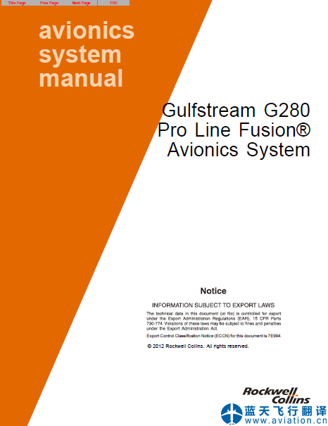 藍(lán)天飛行翻譯公司承接大型公務(wù)機(jī)公司的灣流G280 Pro Line Fusion 航空電子系統(tǒng)手冊(cè)翻譯任務(wù) G280 Pro Line Fusion Avionics System Manual Translation