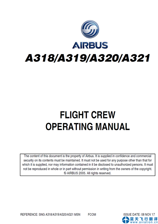 北京藍(lán)天飛行翻譯有限公司完成大型航空公司A320-216機(jī)型飛行機(jī)組操作手冊 FCOM,快速檢查單 QRH,飛機(jī)飛行手冊 AFM 翻譯任務(wù) A320-216 FLIGHT CREW OPERATING MANUAL, QUICK REFERENCE HANDBOOK and AIRPLANE FLIGHT MANUAL translation