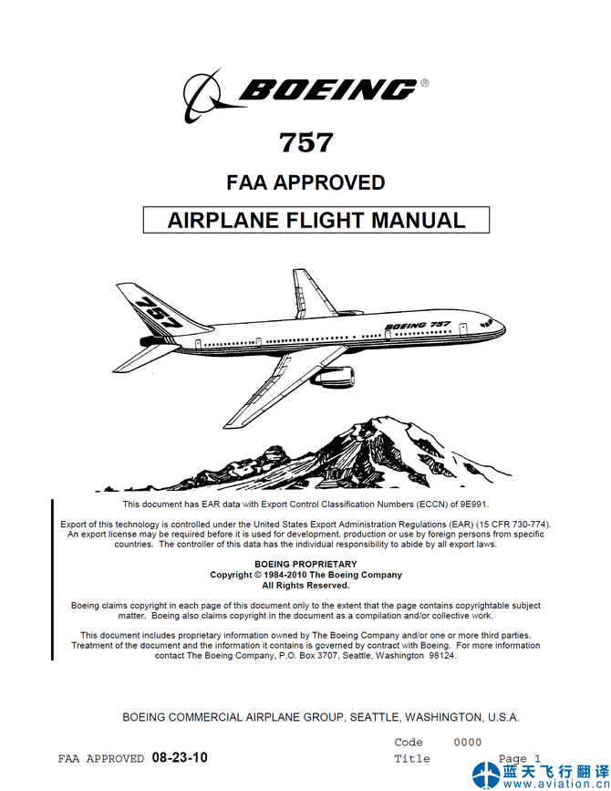 北京藍(lán)天飛行翻譯公司完成航空公司波音757飛機飛行手冊翻譯任務(wù) Boeing 757 Airplane Flight Manual Translation
