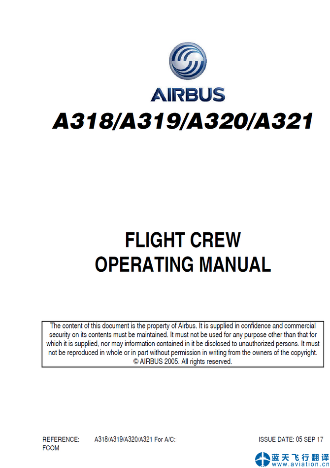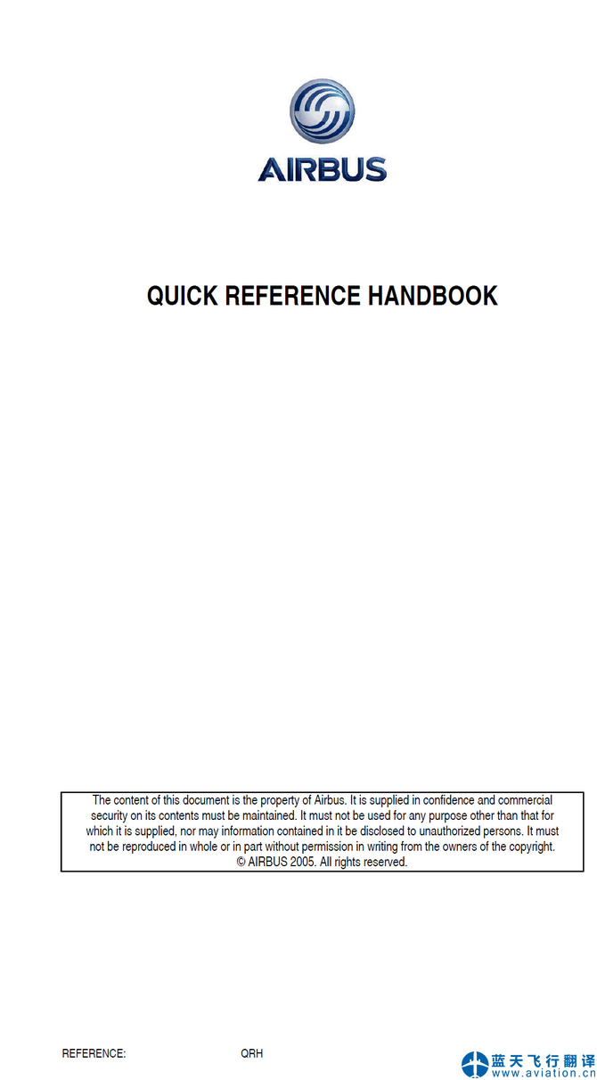 北京藍(lán)天飛行翻譯公司完成航空公司2017年9月5日版本空客A320機(jī)組操作手冊和快速檢查單翻譯任務(wù) A320 FLIGHT CREW OPERATING MANUAL and QUICK REFERENCE HANDBOOK Translation