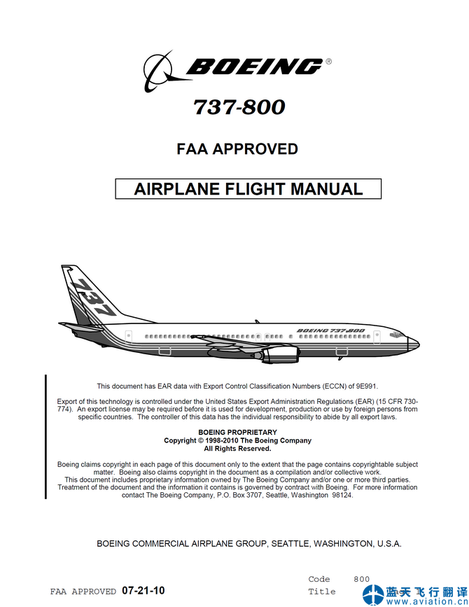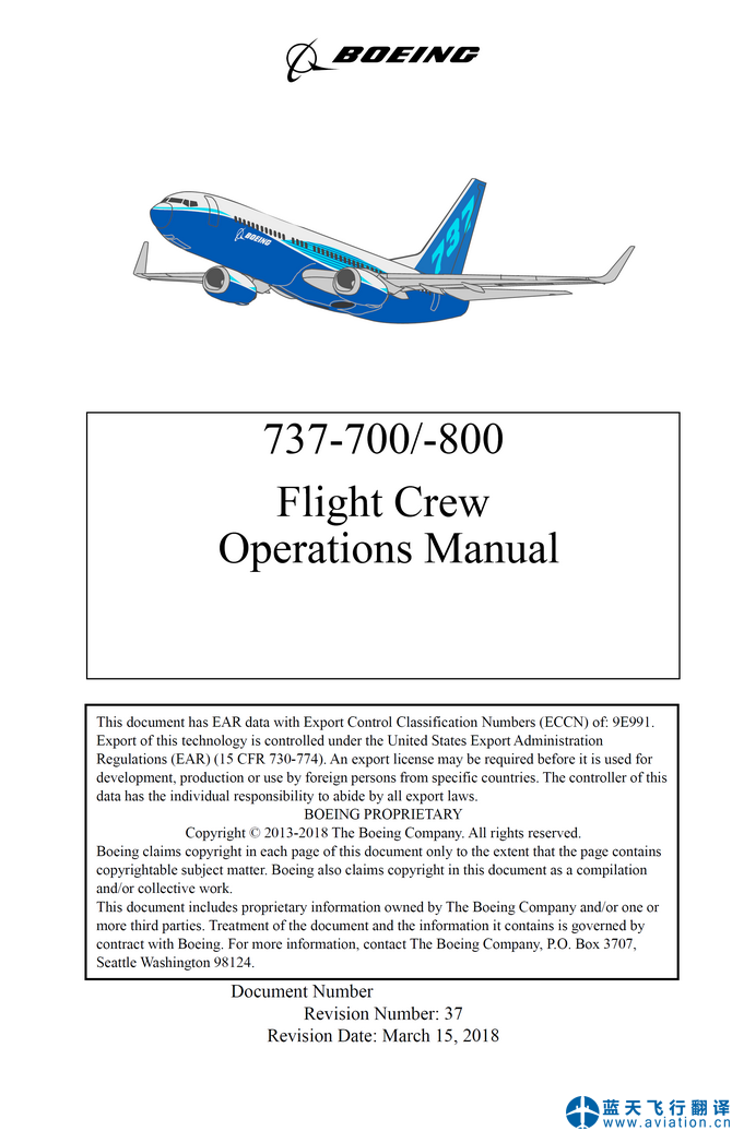 北京藍天飛行翻譯公司承接航空公司全套波音737-800飛行手冊翻譯任務(wù) 737-800 Flight Manuals Translation 此次翻譯的全套波音737-800飛行手冊包含有2018年3月15日(March 15, 2018)版本的737-800飛行機組使用手冊(Flight Crew Operations Manual),737-800快速檢查單(Quick Reference Handbook),737-800飛機飛行手冊(Airplane Flight Manual)和737 NG飛行機組訓(xùn)練手冊(Flight Crew Training Manual)。 ![]() ![]() 737 NG飛行機組訓(xùn)練手冊 737 NGFlight Crew Training Manual ![]() 737-800快速檢查單 737-800 Quick Reference Handbook ![]() 737-800飛機飛行手冊 737-800 Airplane Flight Manual |
