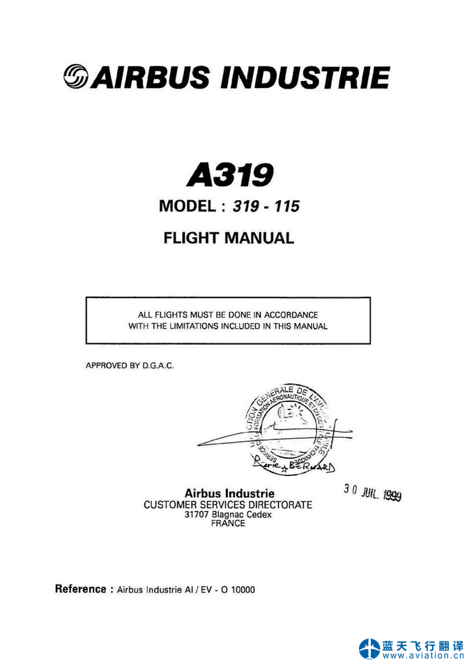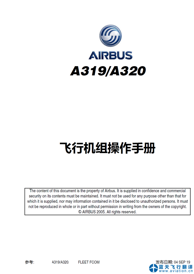 北京藍天飛行翻譯公司完成航空公司45架空客A320 FCOM、AFM和FCTM翻譯任務 04 SEP 19 A320 FLIGHT CREW OPERATING MANUAL, QUICK REFERENCE HANDBOOK and AIRPLANE FLIGHT MANUAL Translation