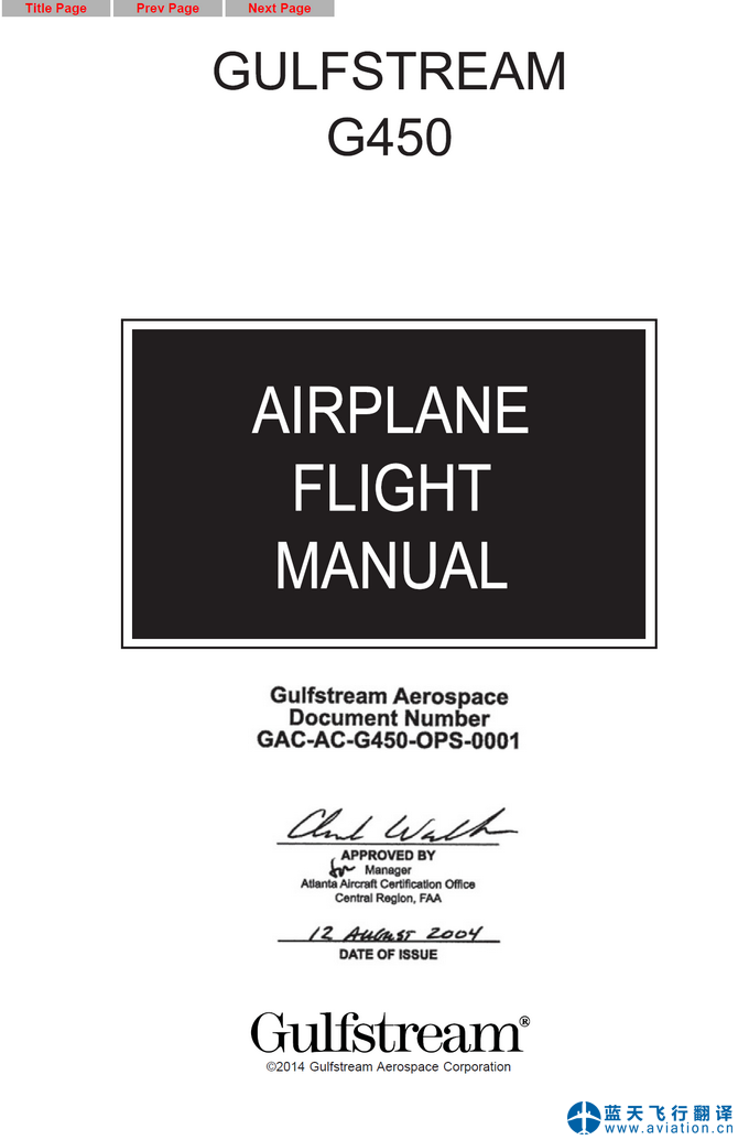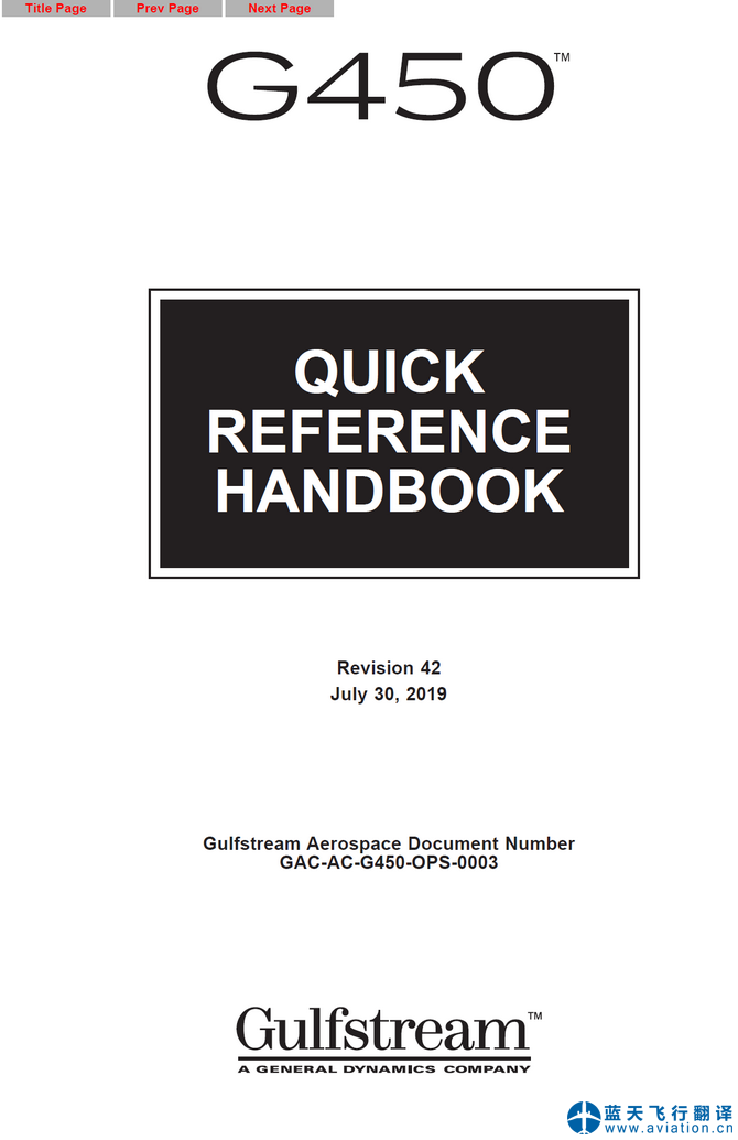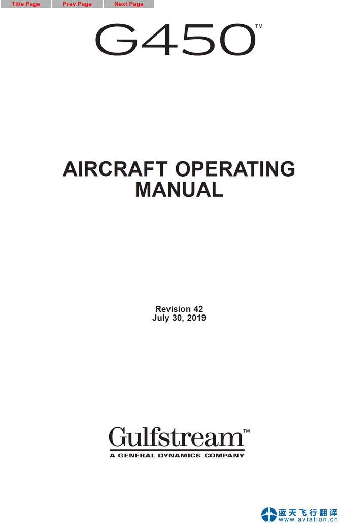 北京藍(lán)天飛行翻譯公司完成大型公務(wù)機公司的2019年7月30日,第42版灣流G450全套飛行手冊翻譯任務(wù) G450 Flight Manual Translation