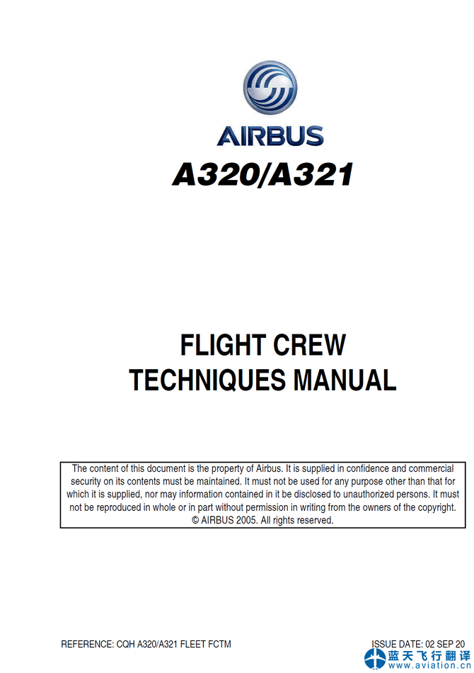 北京藍天飛行翻譯有限公司完成航空公司2020年9月2日版本空客A320飛行機組技術(shù)手冊翻譯任務 02 SEP 20 A320 FLIGHT CREW TECHNIQUES MANUAL Translation